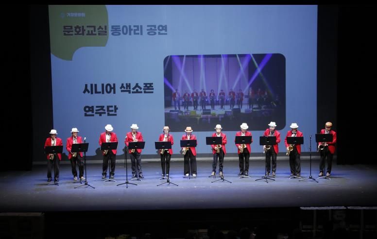 이번 행사는 1부 개회식과 낭만아재밴드의 초청공연, 2부 공연으로 문화교실 수강생의 경기민요, 기타&노래, 남도민요, 농악, 실버합창단, 연극교실, 동아리 단체인 시니어색소폰연주단과 초청공연으로 실버 통기타(거창군 삶의 쉼터), 그라운디(댄스아카데미)가 참가해 실력을 뽐냈다.