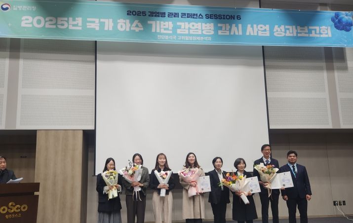 [비건뉴스=최지영 수습기자] 대전보건환경연구원은 28일 청주 오스코에서 열린 ‘2025년도 감염병관리 콘퍼런스’에서 하수기반 감염병 감시 우수기관으로 선정되어 질병관리청장 기관 표창을 받았다.