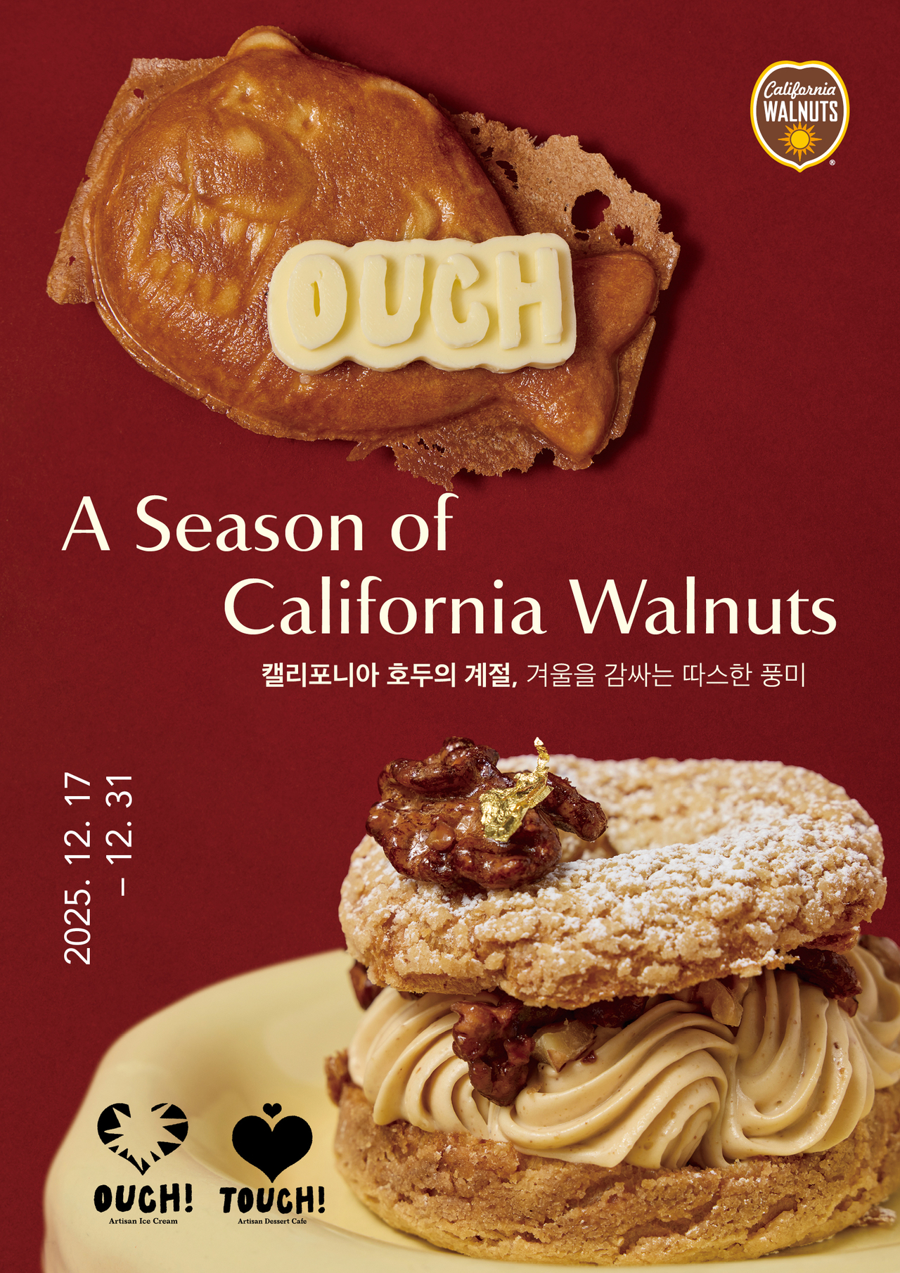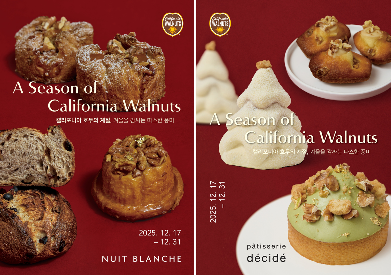 [비건뉴스=이용학 기자] 캘리포니아 호두협회, California Walnut Commission는 서울 주요 베이커리·디저트 숍과 함께 겨울 시즌 한정 팝업 ‘A Season of California Walnuts’를 오는 17일부터 31일까지 운영한다고 밝혔다.