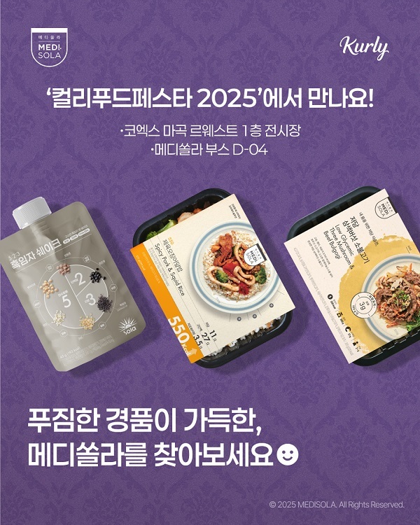 메디쏠라 관계자는 “컬리푸드페스타 2025는 맛과 건강을 함께 고려한 푸드케어 식단을 직접 경험할 수 있는 자리”라며 “앞으로도 일상 속에서 실천 가능한 건강 관리 식단을 통해 푸드케어 시장에서의 역할을 확대해 나가겠다”고 말했다.