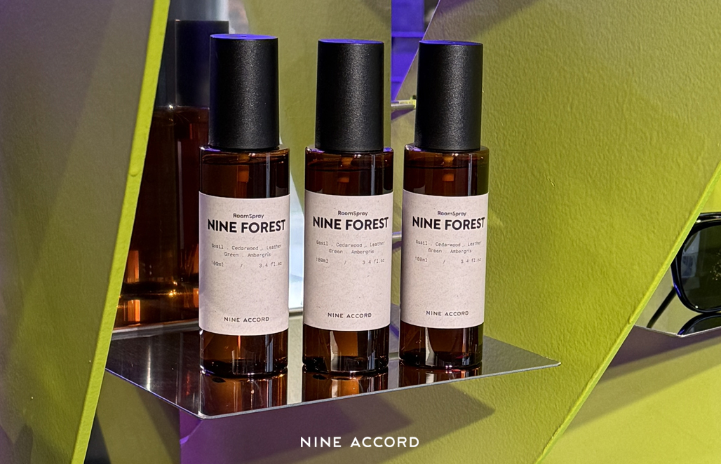 이번 룸스프레이는 출시와 동시에 나인어코드 한남 쇼룸 공간에 적용됐다. 쇼룸을 방문한 고객은 공간에 적용된 향을 통해 브랜드가 의도한 분위기를 직접 체험할 수 있도록 구성됐다.