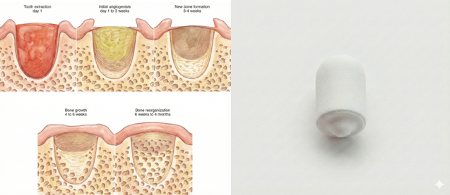 이처럼 혈병 형성에서 시작해 육아조직 생성과 신생골 형성으로 이어지는 치유 과정이 원활하게 진행돼야 이후 치료 단계로 자연스럽게 연결될 수 있다. 임상에서는 발치 후 골 흡수를 줄이기 위해 동종골, 이종골, 합성골 등을 사용하는 발치와 보존술이 시행되기도 한다. 다만 골이식재를 사용하는 방법 외에도, 발치와 내에서 자연적인 치유 환경을 안정적으로 유지하는 접근 역시 함께 고려된다.