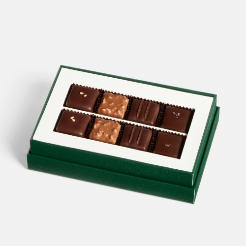 세트는 깊고 진한 카카오 풍미가 중심이 되는 만자리 가나슈 초콜릿으로 시작한다. 이어 헤이즐넛 프랄린 초콜릿은 밀크 초콜릿과 견과류의 조화를 통해 부드럽고 고소한 맛을 더한다. 소이 소스 캐러멜 가나슈 초콜릿은 달콤함과 짭짤함의 대비를 활용해 풍미의 폭을 넓히며, 제주 레몬 리몬첼로 가나슈 초콜릿은 상큼한 시트러스 향으로 마무리를 맡는다.