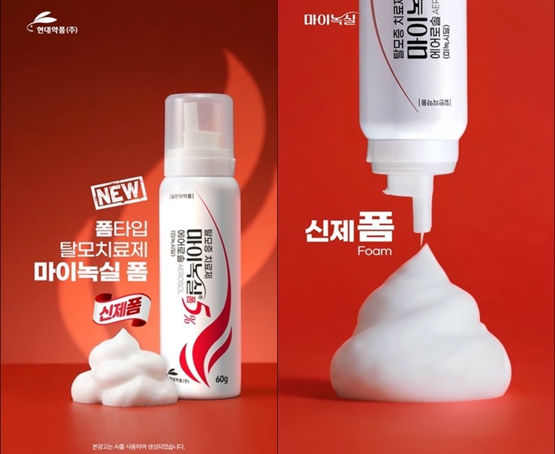현대약품은 탈모증 치료제 ‘마이녹실폼 5% 에어로솔’의 신규 TV 광고 영상을 공개했다고 10일 밝혔다.