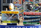 [V포토] 현수막 펼친 참가자들 모피·다운 반대 촉구