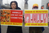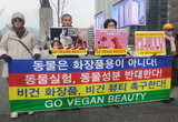 [V포토] 비건 화장품 촉구 기자회견 피켓