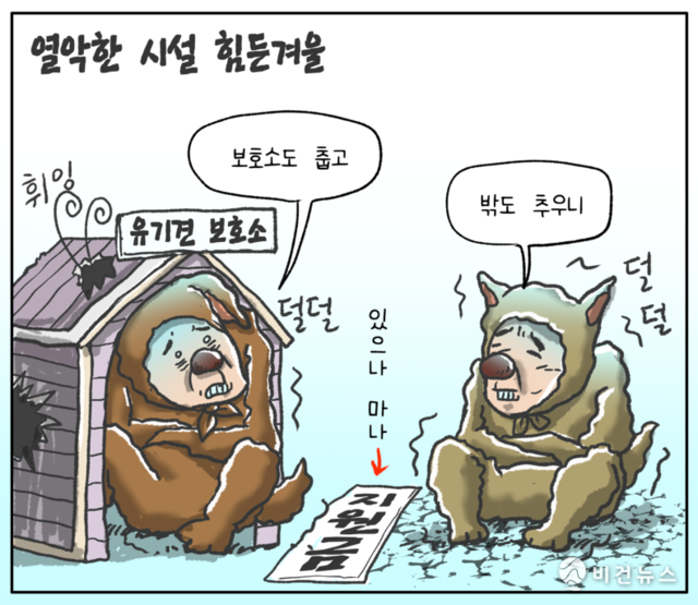 [비건만평] 한파 닥친 유기동물 보호소, 열악한 시설에 '꽁꽁'
