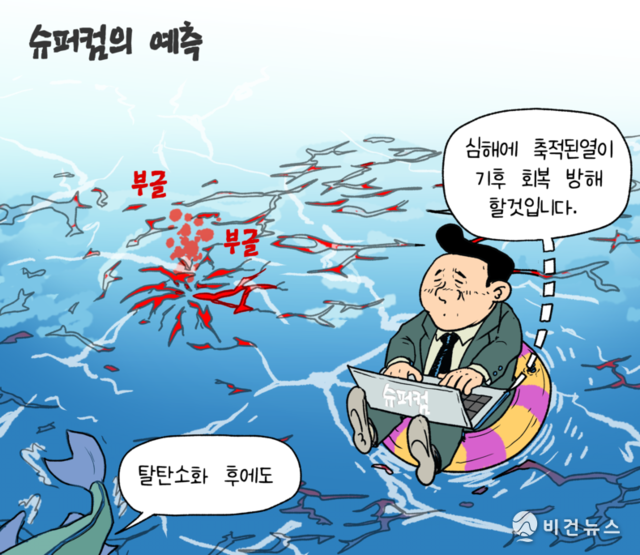 [비건만평] "슈퍼컴의 섬뜩한 예측" 탄소중립 달성해도 기후변화 이어져