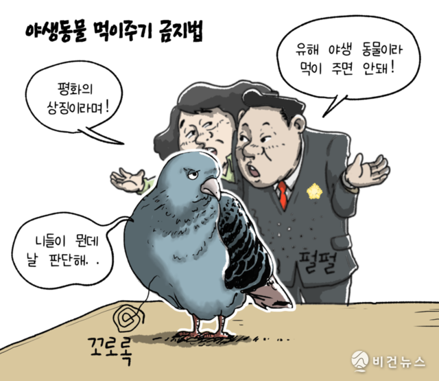 [비건만평] 평화의 상징이라고 수입할 땐 언제고…비둘기, 굶겨 죽이는 '야생생물법'