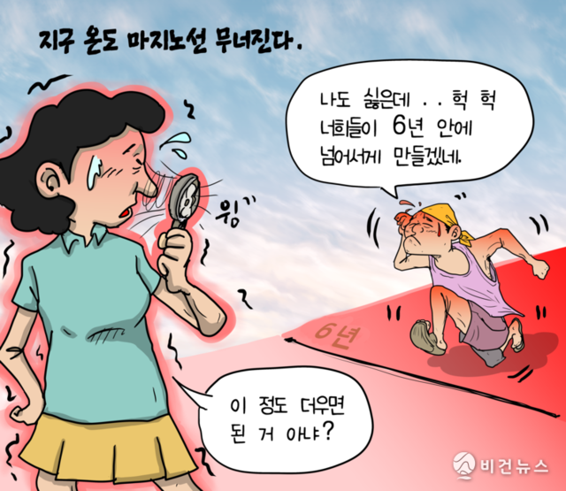 [비건만평] "기후 비상사태의 문턱"…지구 온도 마지노선 6년 안에 무너진다