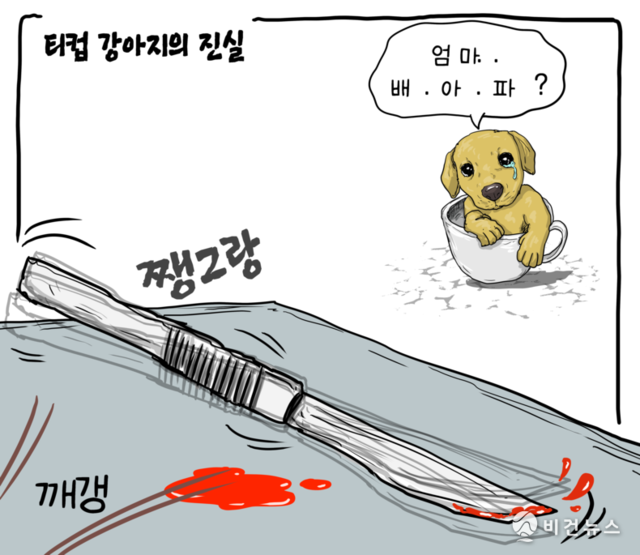 [비건만평] 귀여운 티컵 강아지의 진실…작고 약한 모견, 제왕절개로