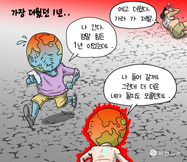 [비건만평] 2023년은 인류 역사상 가장 더웠던 한 해