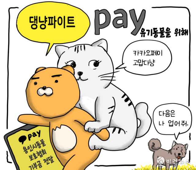 [비건만평] 카카오페이, '댕냥파이트'로 유기동물 후원금 1천만원 전달