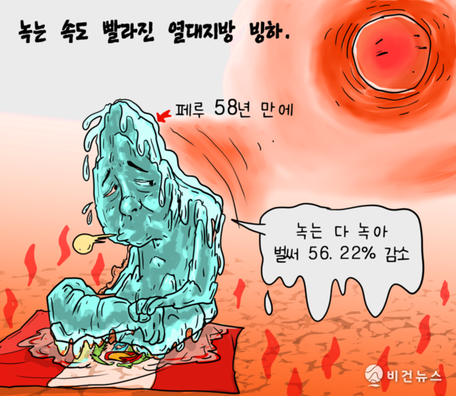 [비건만평] 기후변화에 페루 빙하 56% 감소…"식수원의 절반을 상실한 것"