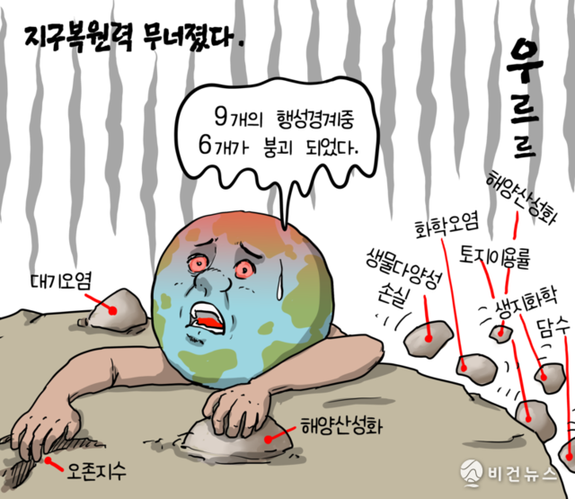 [비건만평] "지구복원력 무너져" 9개 행성경계 중 6개 붕괴