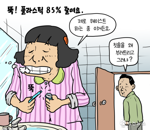 [비건만평] '또깍' 부러뜨린 조르단 칫솔…플라스틱 82% 줄인다