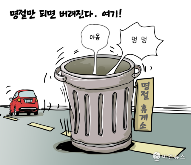[비건만평] 명절 연휴·휴가철, 휴게소에 버려지는 반려동물…유기동물 급증