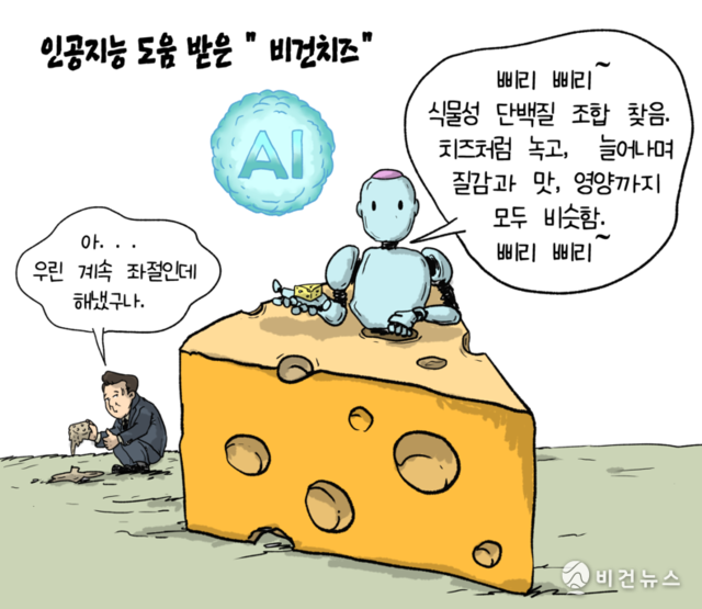 [비건만평] 인공지능이 개발 도운 '비건치즈'…식물성 재료로 만든 카제인