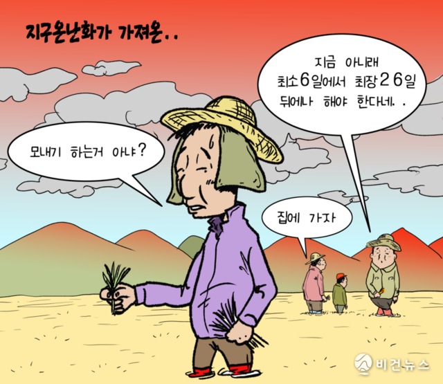 [비건만평] 기후변화로 모내기 시기 달라진다…최장 26일 늦춰야