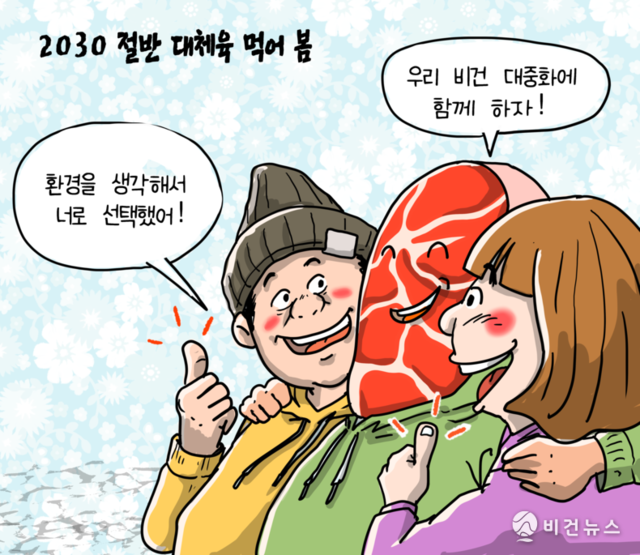 [비건만평] '비건 대중화' 환경보호를 위해 2030세대 '대체육' 소비