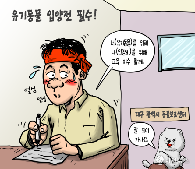 [비건만평] 유기 동물 입양 전 교육, 너와 나를 위해 필수 이수