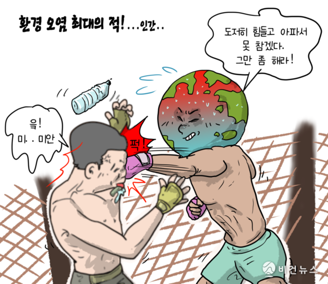 [비건만평] 지구의 적은 '인간'…환경 오염의 주범