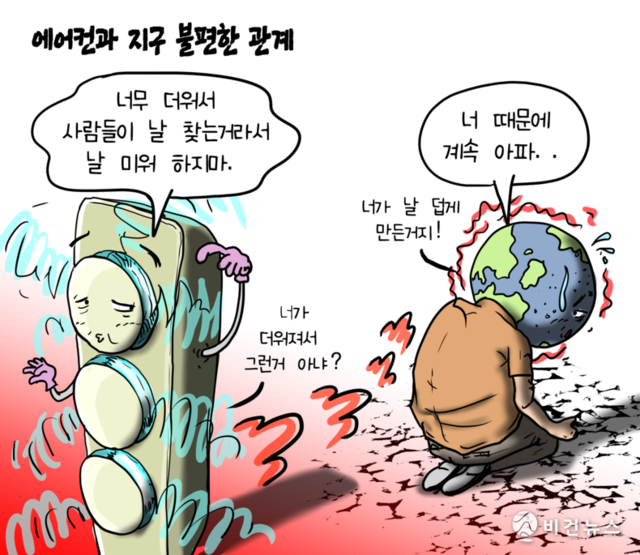 [비건만평] 에어컨과 지구, 불편한 관계…더워서 틀면 지구는 아파