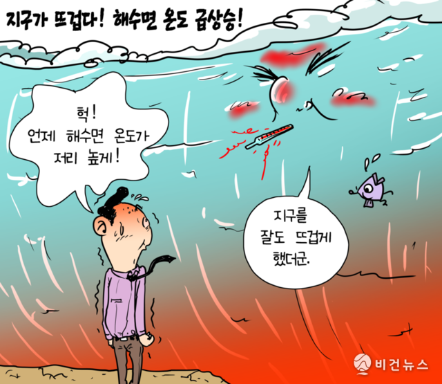 [비건만평] "지구가 뜨거워" 해수면 온도 급상승