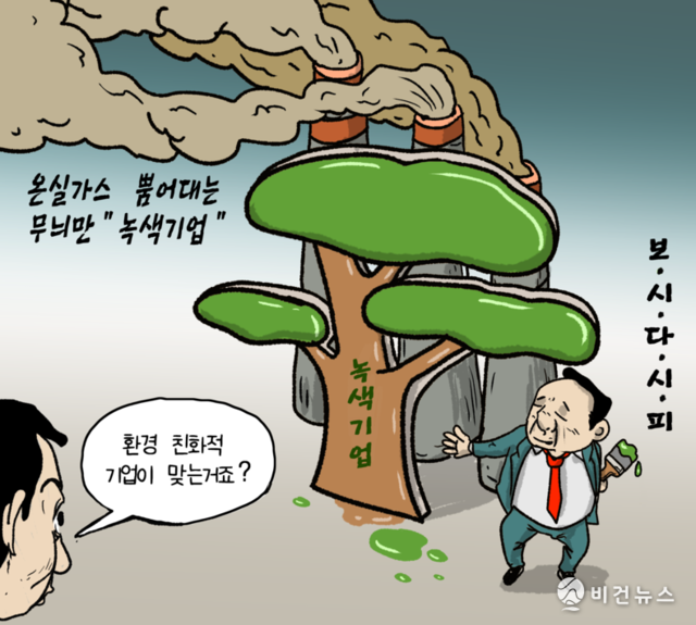 [비건만평] 정부가 인증한 '녹색기업', 온실가스 배출 '펑펑'