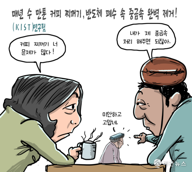 [비건만평] 버려지는 커피 찌꺼기, 반도체 폐수 필터로 변신