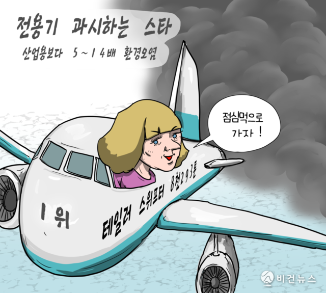 [비건만평] '전용기로 부 과시' 테일러 스위프트, 올해 탄소 배출 1위