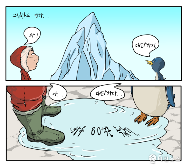 [비건만평] 기후위기 탓, 그린란드 빙하 하루에 60톤 녹아