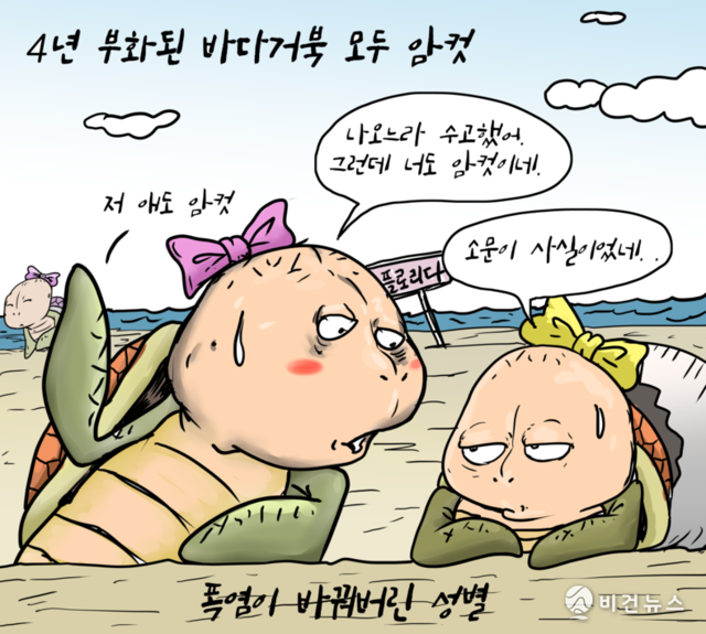 [비건만평] '지구온난화 탓' 플로리다 바다거북 모두 암컷으로 부화