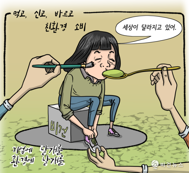 [비건만평] '입고 먹고 바르고 신고' 친환경 소비 확산