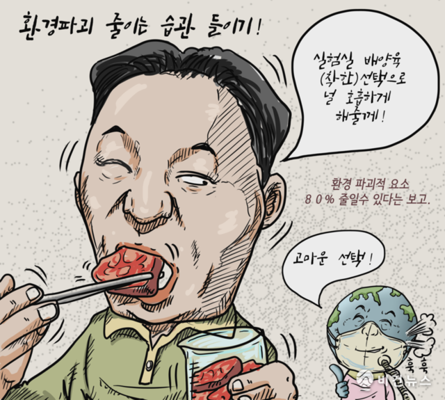 [비건만평] "실험실 속 배양육" 환경 파괴를 줄이는 방법