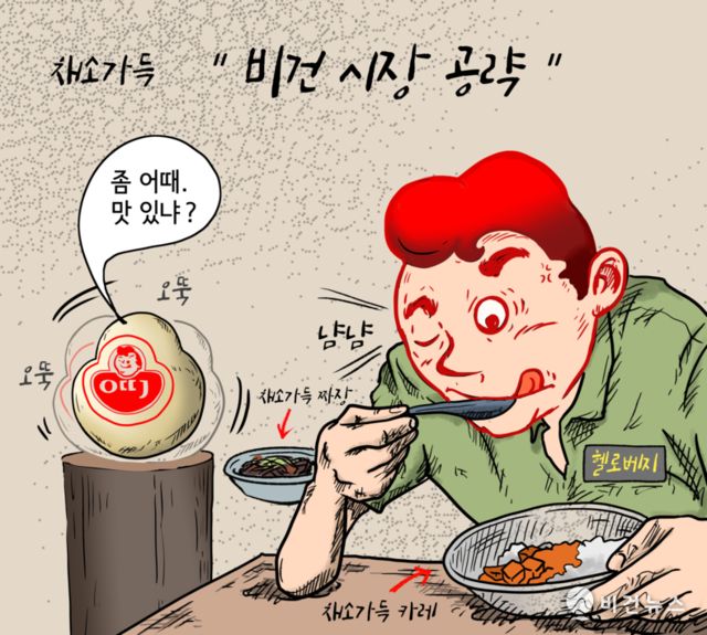 [비건만평] 오뚜기, '헬로베지' 론칭…"본격 비건시장 공략"