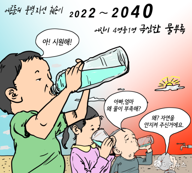 [비건만평] "기후위기 탓, 어린이 4명 중 1명 극심한 물부족 겪을 것"