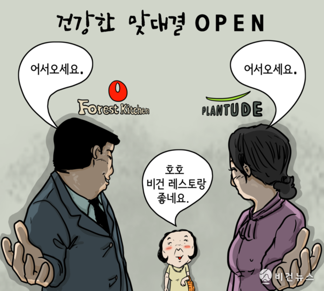 [비건만평] "건강한 맞대결" 농심·풀무원 비건 레스토랑 오픈