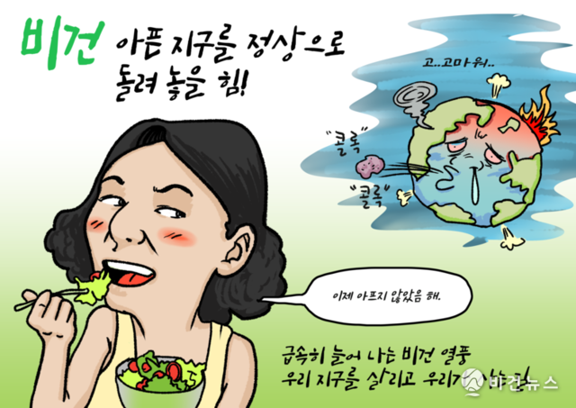[비건만평] 비건, 아픈 지구를 정상으로 돌려놓을 힘