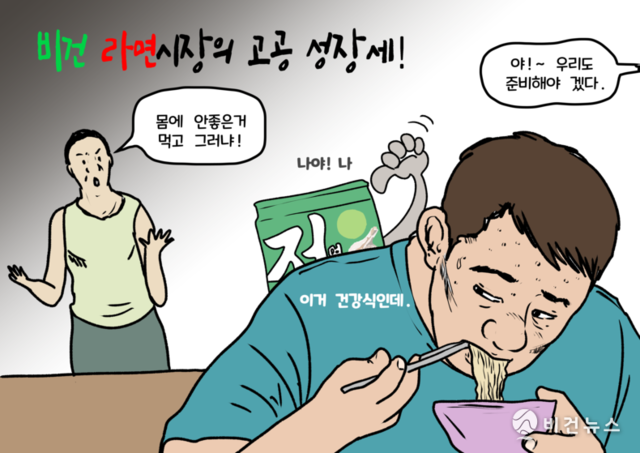 [비건만평] "팔도 비빔면도 비건?"…'비건 비빔면' 입소문