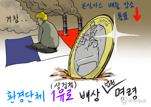[비건만평] "프랑스 정부는 안일한 기후변화 대응에 책임지고 1€ 배상하라"