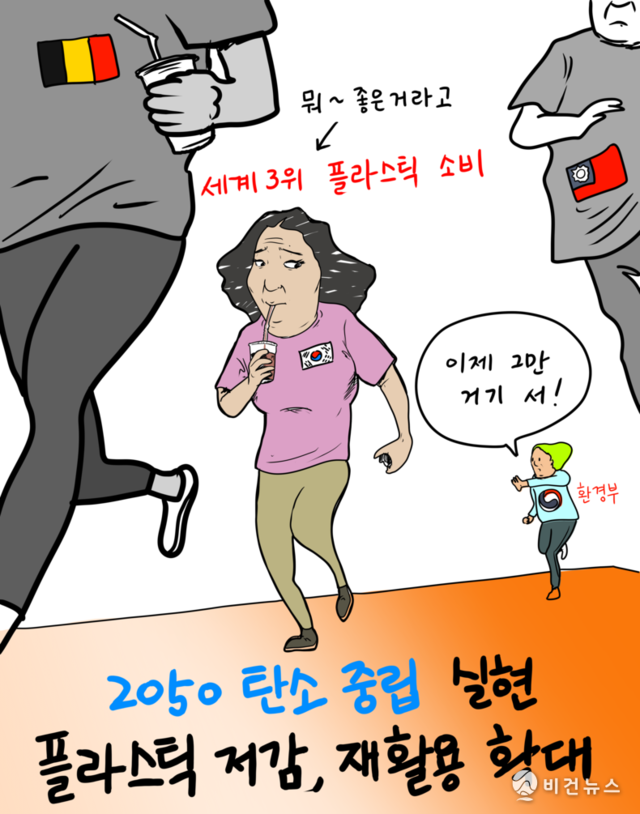 [비건만평] '2050 탄소중립' 실현…한정애 환경부 장관 "플라스틱 저감, 재활용 확대"