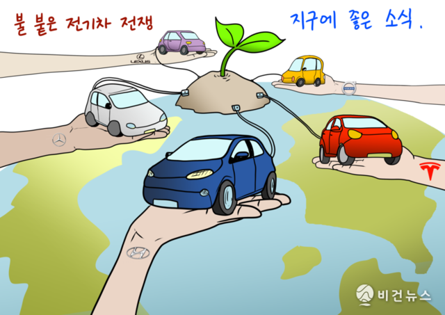 [비건만평] 불 붙은 전기차 전쟁…지구에 좋은 소식