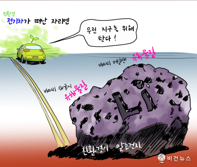 [비건만평] 친환경 전기차 배터리의 불편한 진실