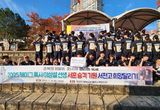 [V포토] 피켓과 현수막 들고 기자회견 진행