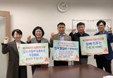 [V포토] 피켓과 현수막 들고 기자회견 진행