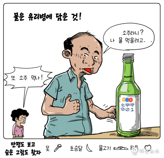 [비건만평] 소주병에 담긴 미네랄 워터 '소우주001', 유리병 재사용 실천