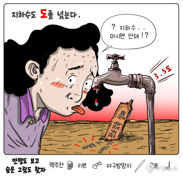 [비건만평] 기후변화 탓 지하수도 도 넘어…3.5도 높아져 식수위기 초래