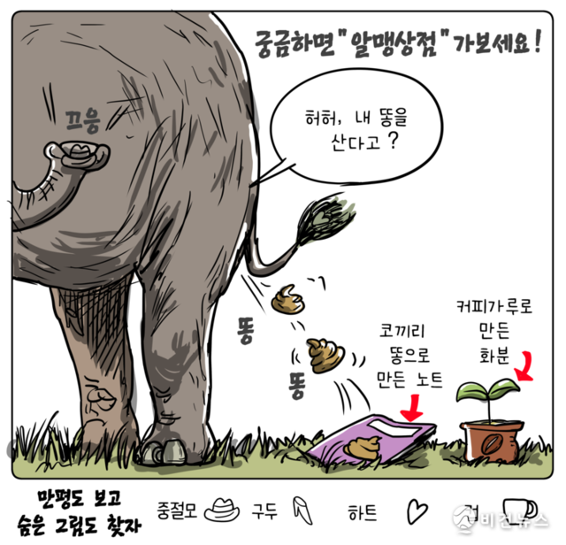 [비건만평] '코끼리 똥'의 무한한 쓸모…궁금하면 '알맹상점'에 가보세요