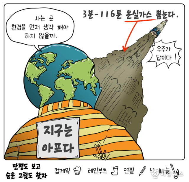 [비건만평] 로켓이 쏟아내는 온실가스…무려 3분에 '116톤'